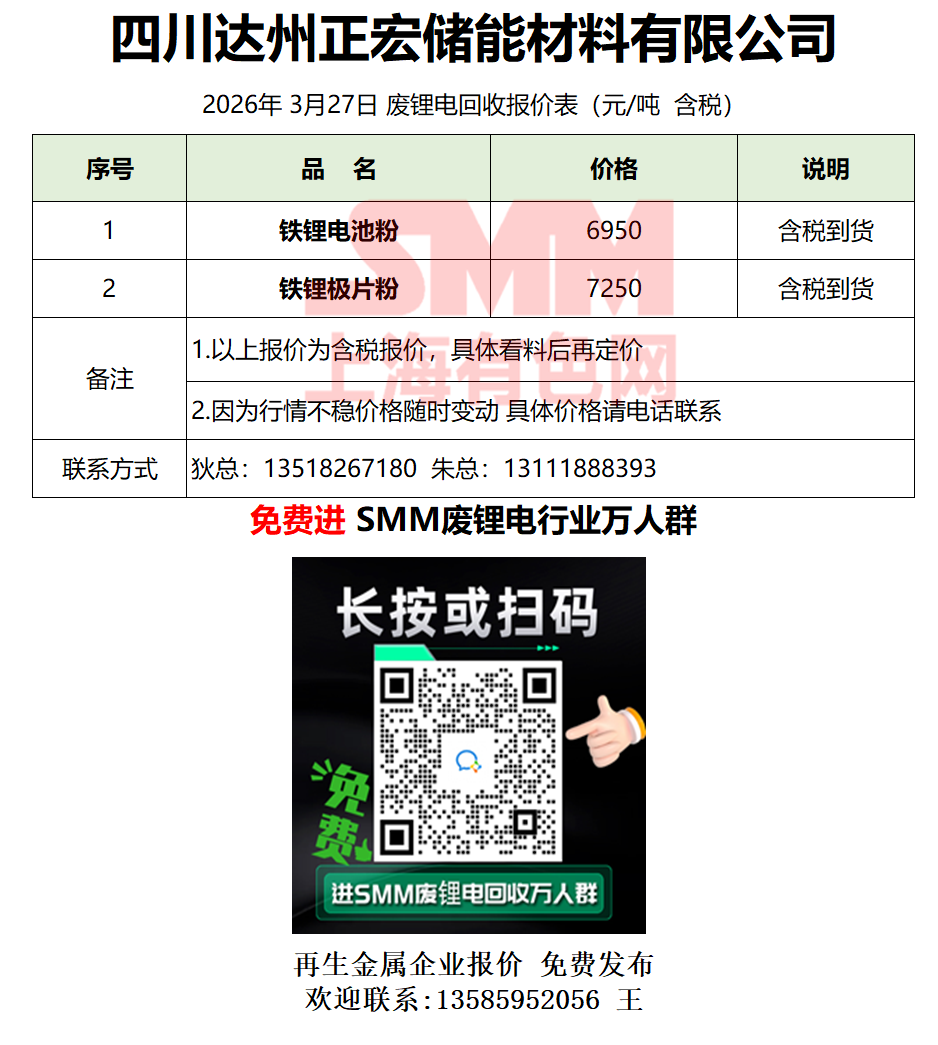 3月27日四川正宏 废锂电采购报价