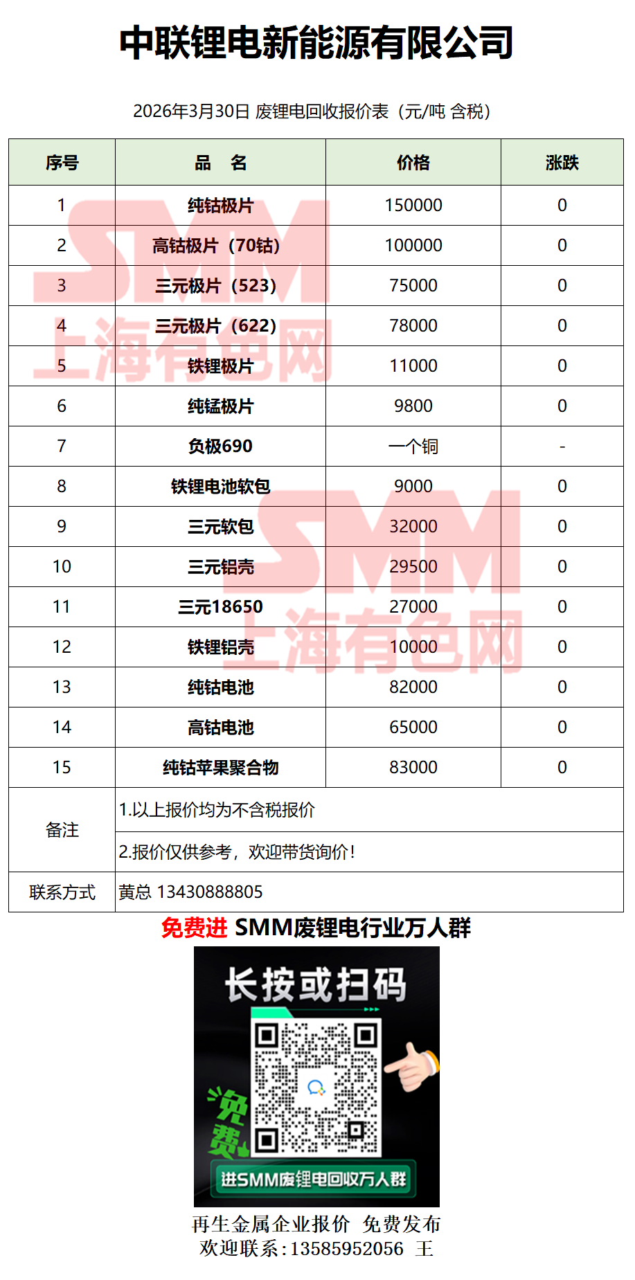 3月30日中联锂电 废锂电采购报价