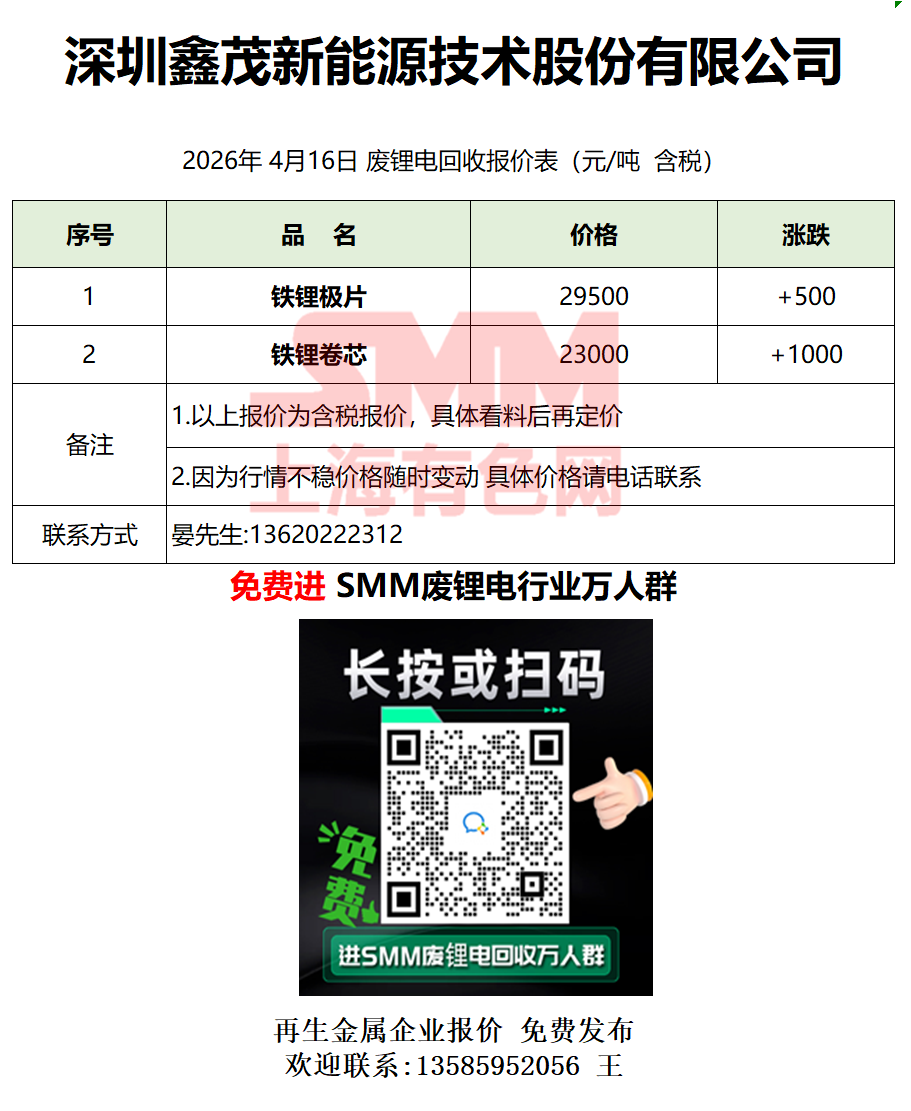 今日深圳鑫茂 废锂电采购报价已更新,有货的朋友欢迎联系我们!