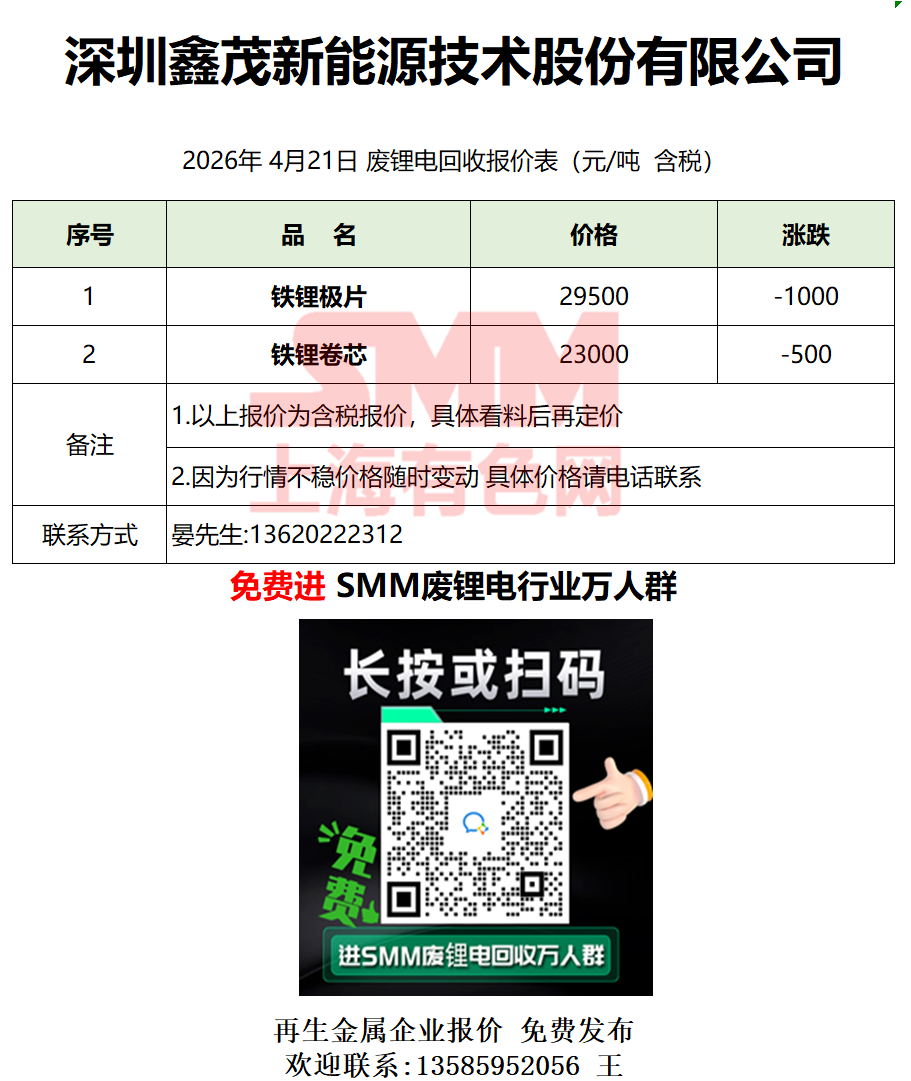 今日深圳鑫茂 废锂电采购报价已更新,有货的朋友欢迎联系我们!