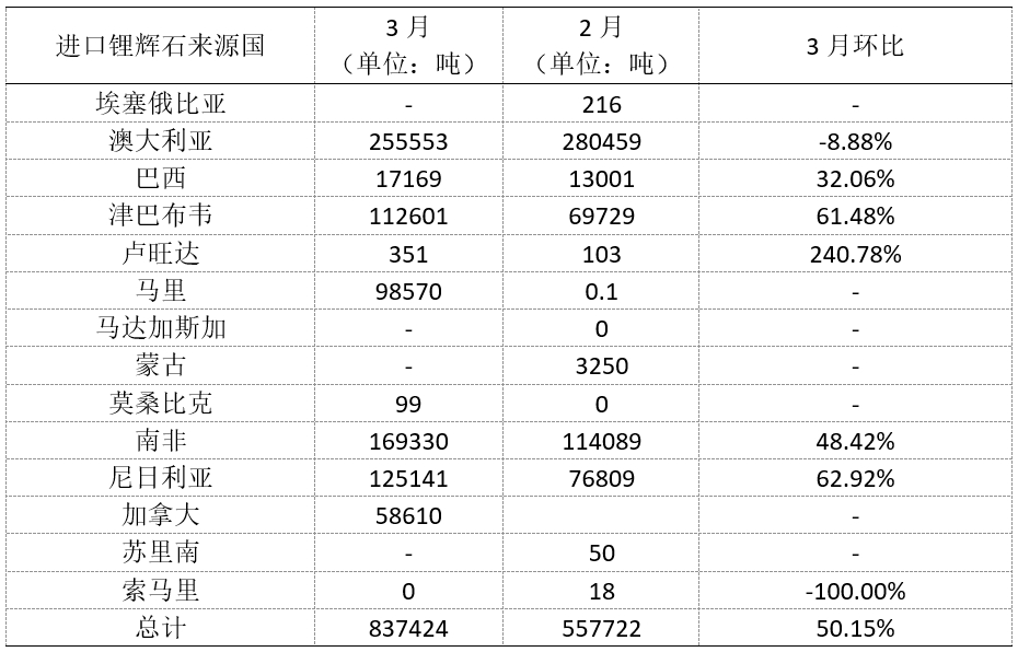 【SMM分析】2026年3月中国锂辉石进口量再创新高 达83.74万实物吨
