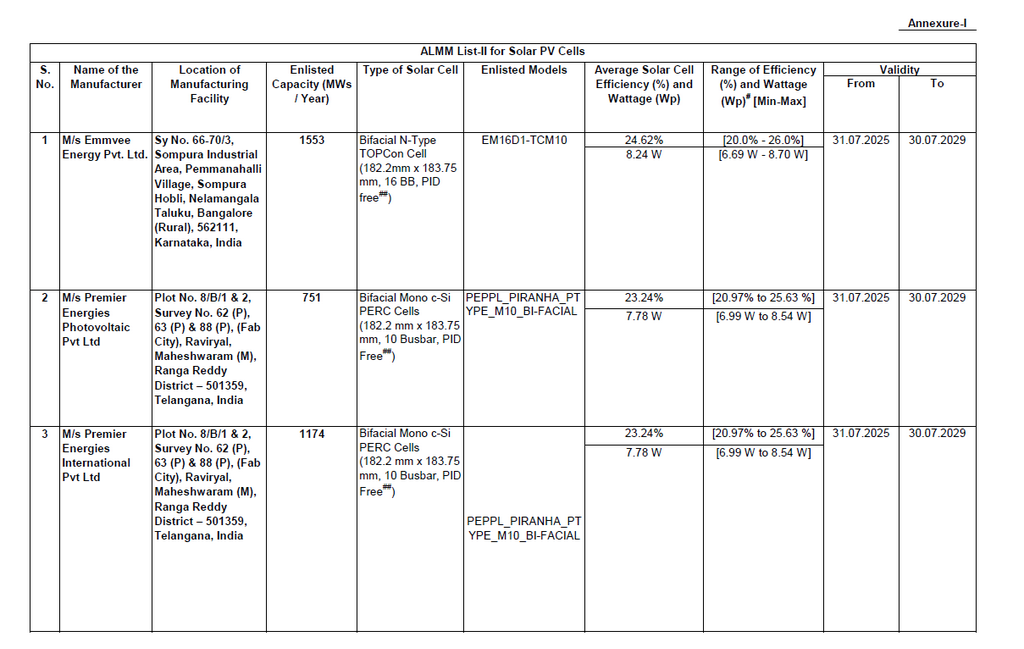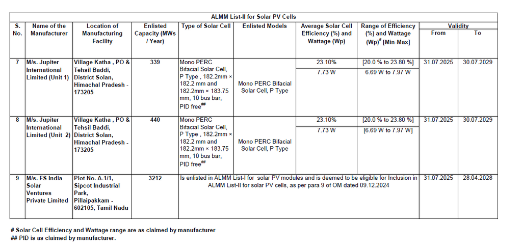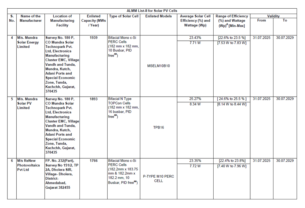 2025年7月底,印度新能源与可再生能源部(MNRE)更新了《批准型号与制造商名录》(ALMM),主要调整包括: