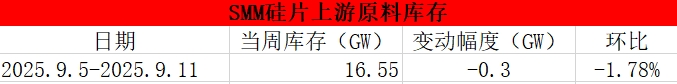 硅片企业周度库存(2025.9.5-2025.9.11)【SMM库存】