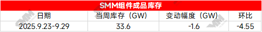 【SMM光伏组件成品周度库存(2025.9.23-2025.9.29)】