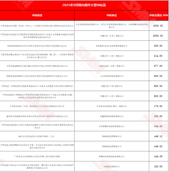 2025年9月1日至2025年9月30日, 当前统计区间SMM统计国内中标:
