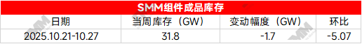 【SMM光伏组件成品周度库存(2025.10.21-2025.10.27)】
