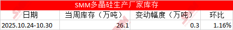 多晶硅企业周度库存(2025.10.24-2025.10.30)【SMM库存】