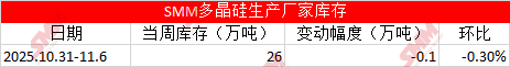 多晶硅企业周度库存(2025.10.31-2025.11.6)【SMM库存】