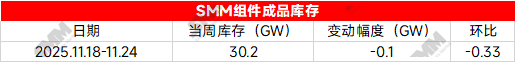 【SMM光伏组件成品周度库存(2025.11.18-2025.11.24)】