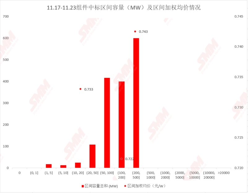 【SMM简报】11.17-11.23光伏组件定标容量1578.50MW,中标均价0.74元/瓦