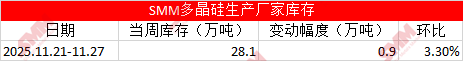 多晶硅企业周度库存(2025.11.21-2025.11.27)【SMM库存】
