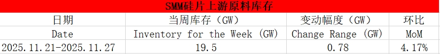 硅片企业周度库存(2025.11.21-2025.11.27)【SMM库存】