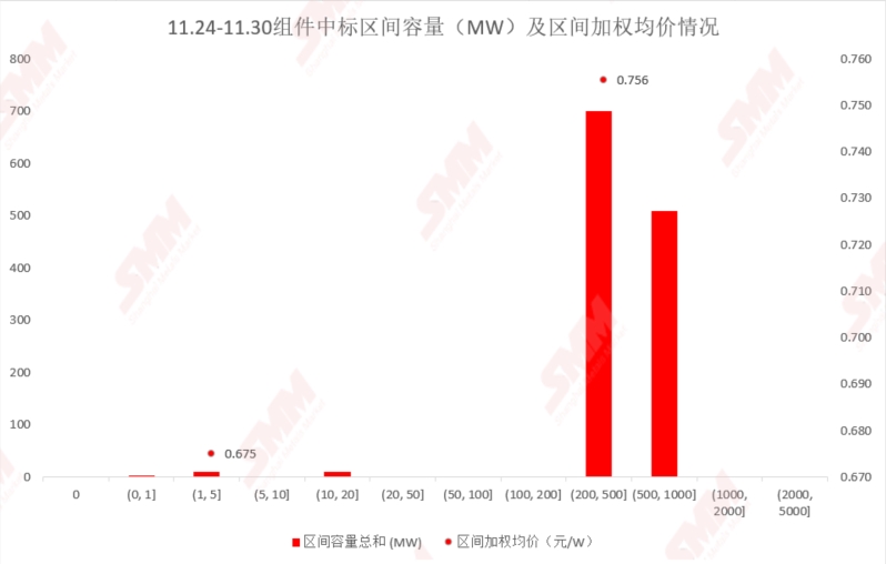【SMM简报】11.24-11.30光伏组件定标容量1232.78MW,中标均价0.76元/瓦