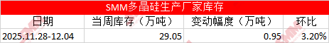 多晶硅企业周度库存(2025.11.28-2025.12.04)【SMM库存】