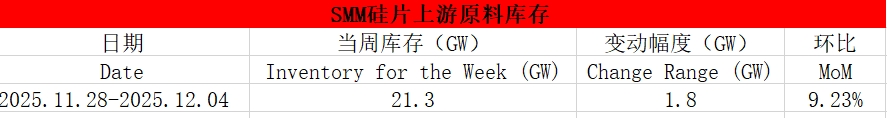 硅片企业周度库存(2025.11.28-2025.12.04)【SMM库存】
