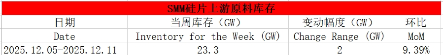 硅片企业周度库存(2025.12.05-2025.12.11)【SMM库存】
