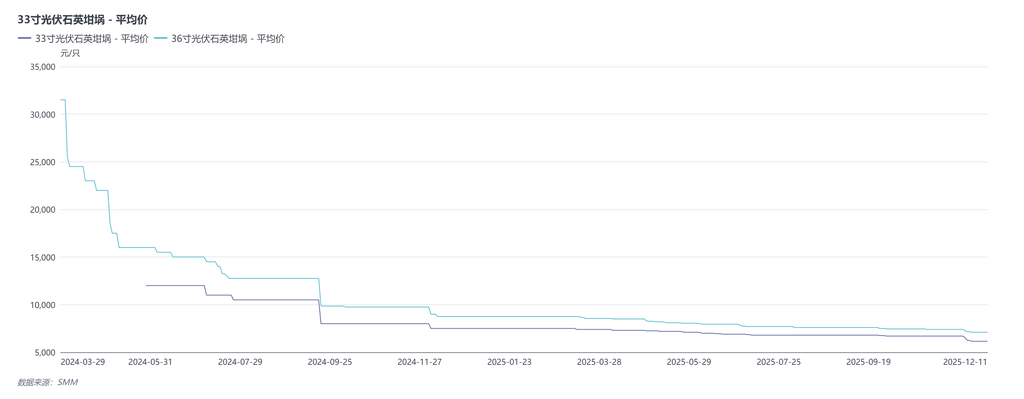 本周,国内高纯石英砂报价小幅下跌,内层、中层、外层高纯石英砂价格持稳,进口砂散单价格下跌1000元。目前市场报价如下:内层砂每吨5.5-6.0万元,中层砂每吨2.0-3.0万元,外层砂每吨1.5-2.0万元。坩埚价格止跌企稳,本周硅片企业外采坩埚的量有所减少,受季节性因素和硅片企业减产所致,外采需求有所减少。