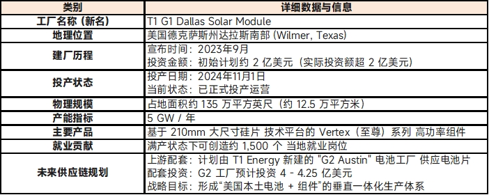 买方 T1 Energy 的战略动机则聚焦于锁定政策红利与实现业务的快速转型。此次收购的核心驱动力在于获取《通胀削减法案》(IRA)第 45X 条款下的生产税收抵免,这为公司提供了直接且巨大的现金流支持。通过接手这一已投产的优质资产,T1 Energy 成功摆脱了此前在电池制造领域(如挪威 Giga Arctic 项目)面临的困境,从一家无收入的电池初创公司迅速转型为拥有正向现金流的太阳能制造商。此外,预期该工厂(G1)还将进一步带动奥斯汀电池厂(G2)的建设,助力 T1 Energy 构建起“组件+电池”的完整美国本土垂直一体化光伏供应链。