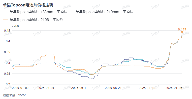 电池片成本随银浆价格同步上涨。三个月内,电池片银成本占比从33%升至53%,上涨20个百分点。在同期电池片成本涨幅中,银成本”贡献“超95%。根据SMM日度模型测算,假设1月26日SMM1#银平均价格27570元/千克计算,当日210RN电池片的含税现金成本已高达近0.47元/W。