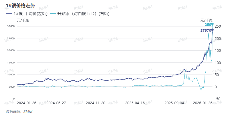 2025 年白银价格迎来史诗级上涨行情,全年累计涨幅超 250%,其中近三个月涨幅更是高达 80%,价格波动幅度创市场阶段性新高。受全球白银市场供需结构性失衡的持续影响,现货市场供应紧张格局不断加剧,推动白银现货升水持续走高,当前现货升水已攀升至 250 元 / 千克。